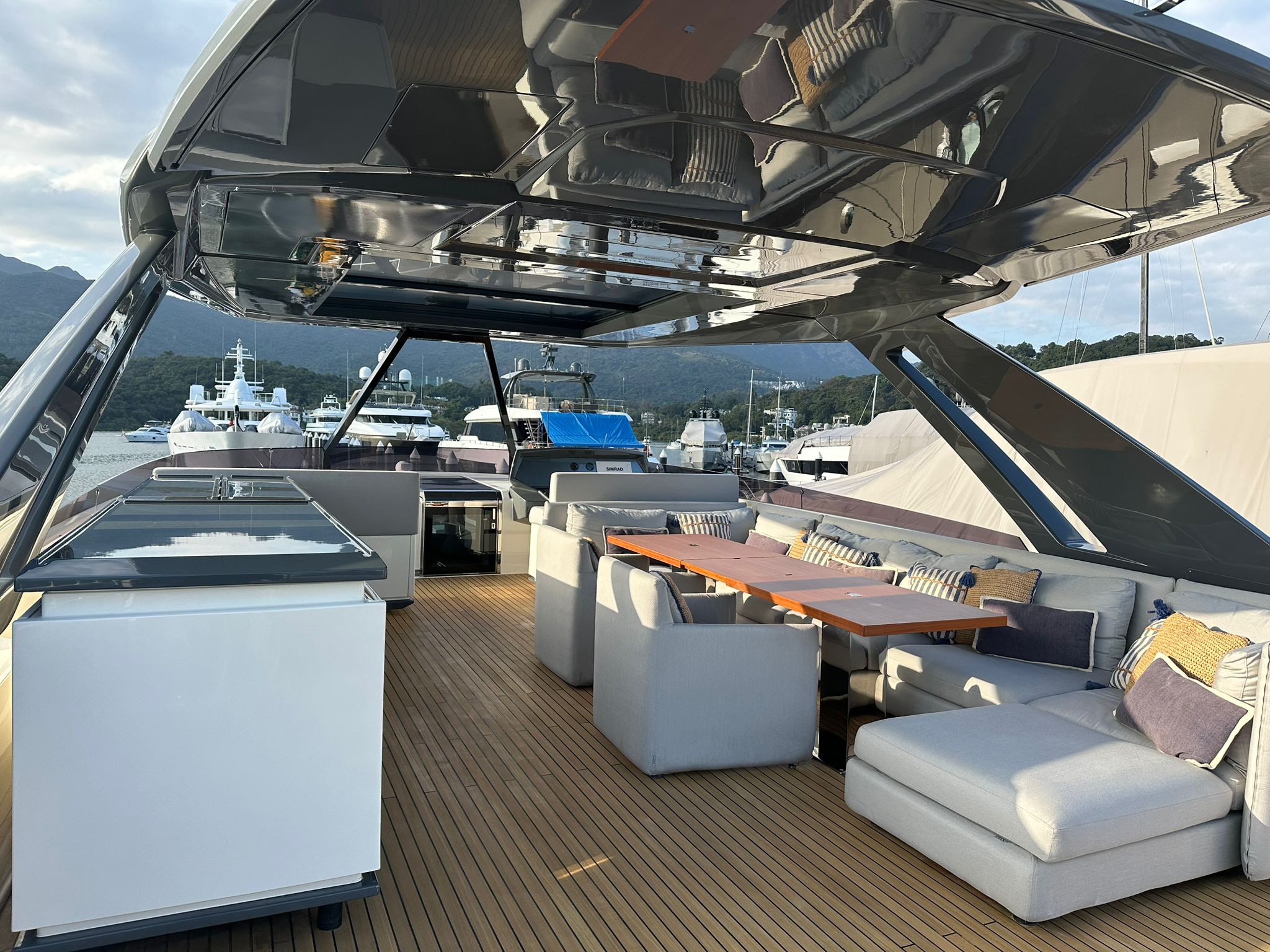Alfresco Living: The expansive flybridge and aft deck are ideal for outdoor dining, lounging, and enjoying panoramic sea views, perfect for enjoying the open waters in style.